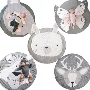 Sale!Play Mat Cartoon Animal Baby Mats Newborn Infant Crawling Blanket Cotton Round Floor Carpet Rugs Props Kids Room Nursery Decor
