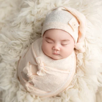 Sale!Ylsteed 7pcs Set Newborn Photography Props Infant Shooting Outfits Baby Stretch Wrap Top Knot Hat Headband Newborn Shower Gift